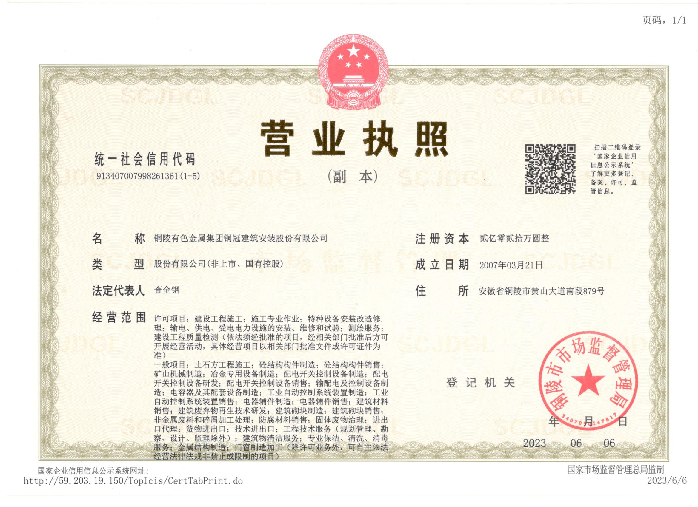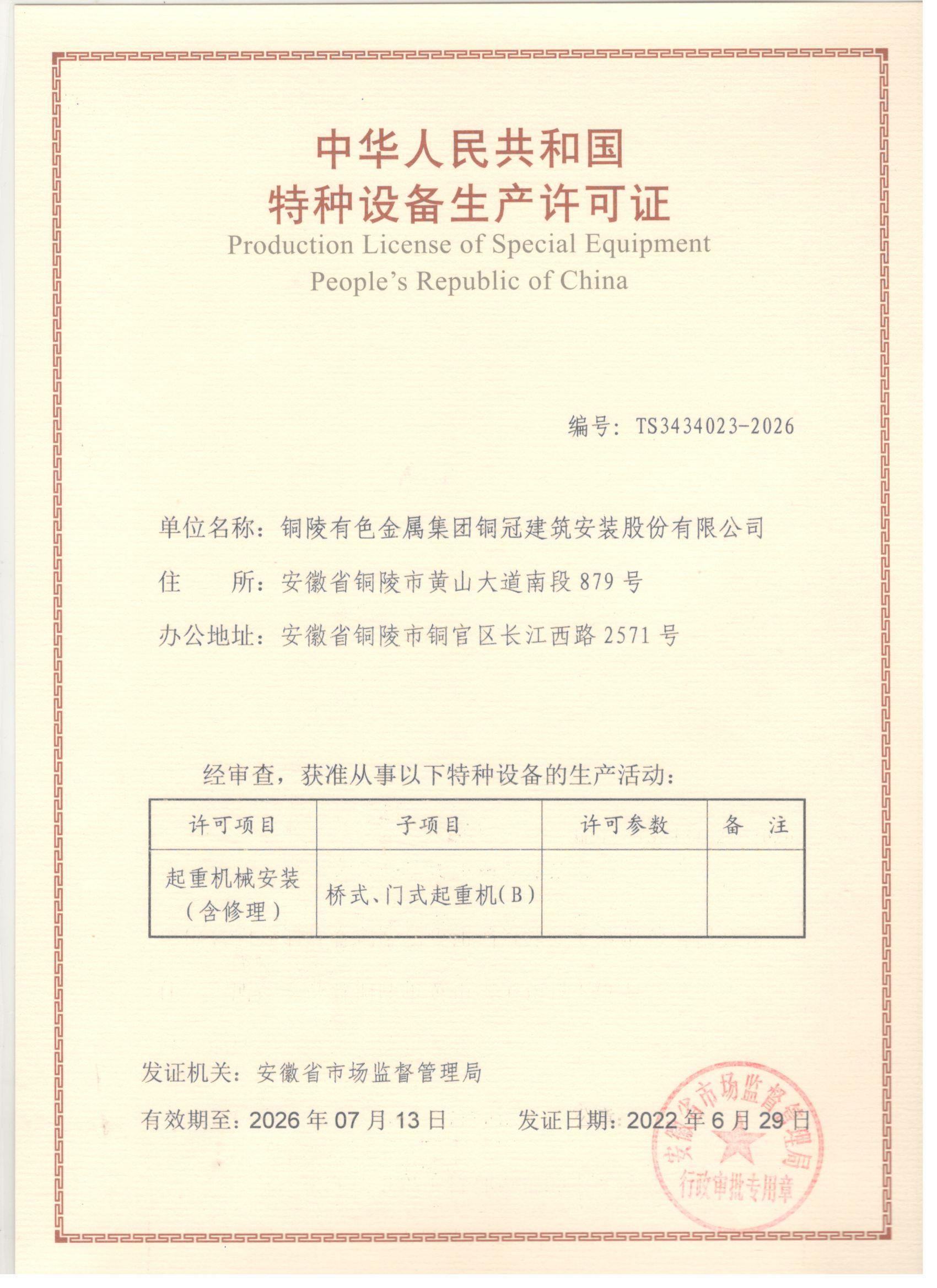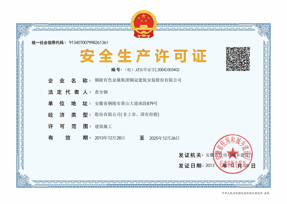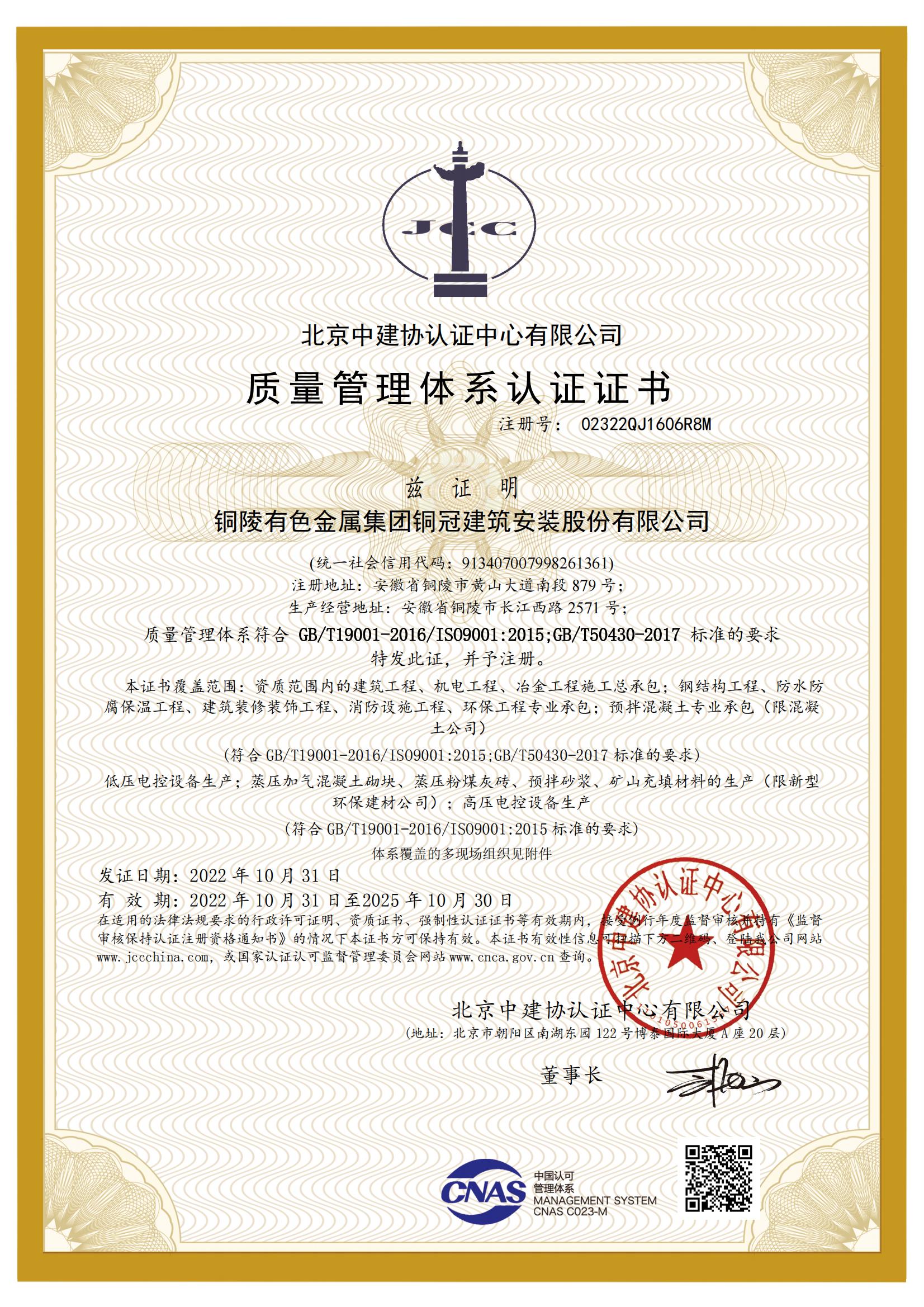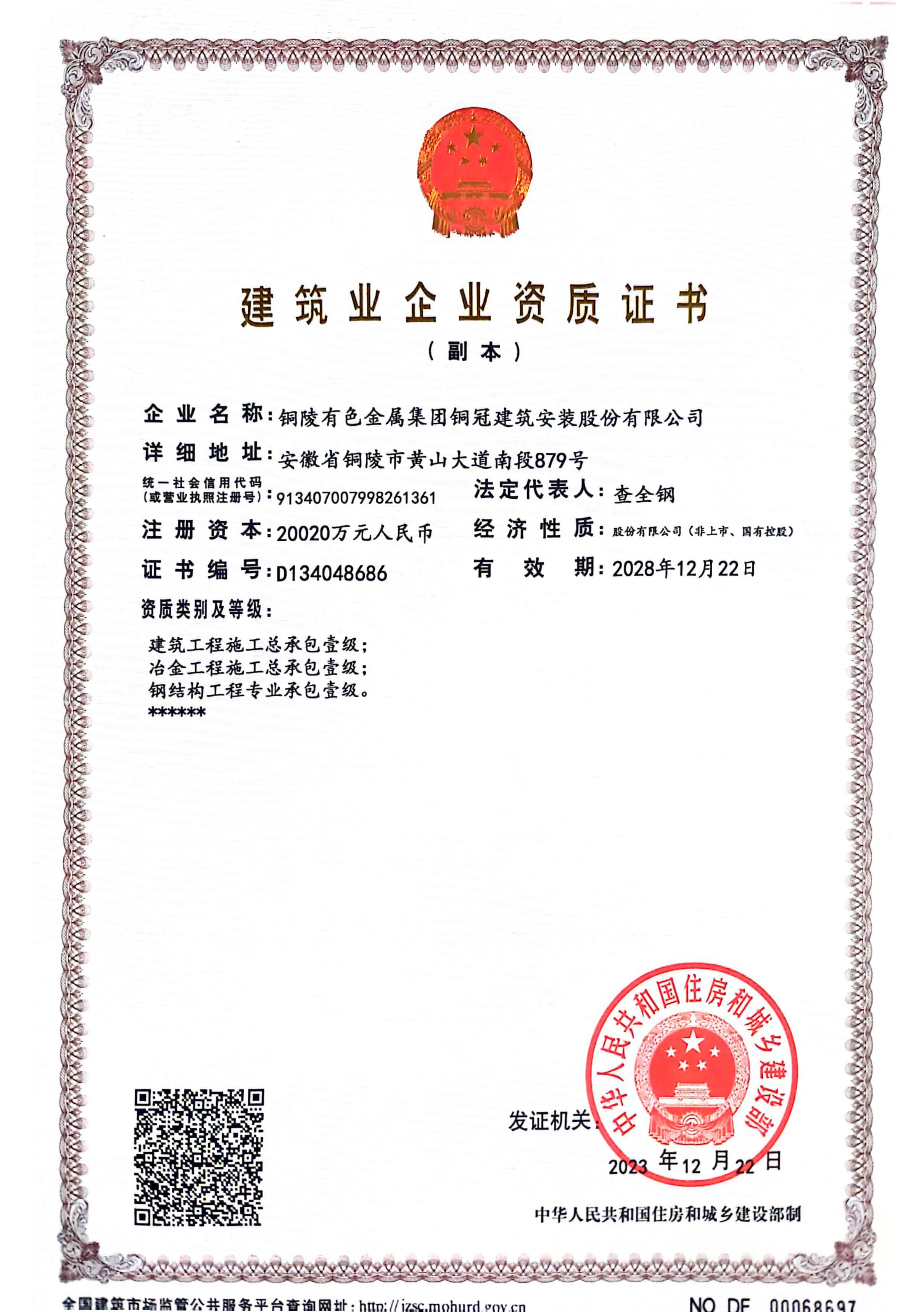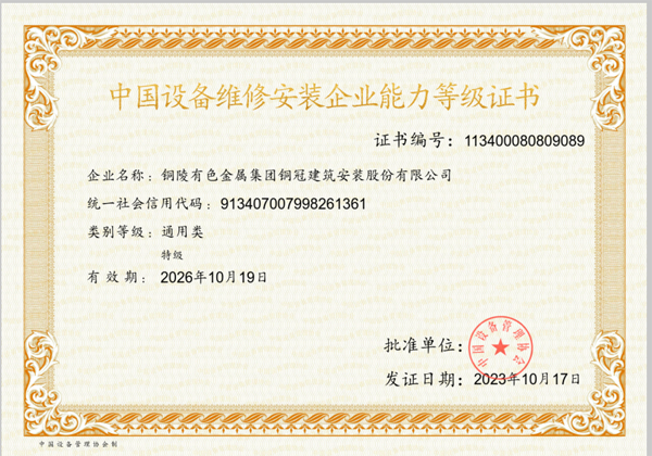 有色金屬工業(yè)建設工程質(zhì)量檢測機構(gòu)資質(zhì)證書